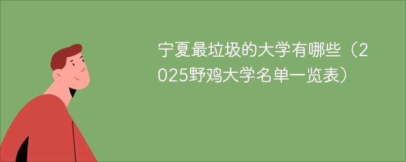 全国各地都有虚假大学的存在,那么在宁夏野鸡大学有哪几所呢?今天我们将介绍宁夏所有野鸡大学名单,并附上宁夏最好的本科大学排名榜,以供大家参考!